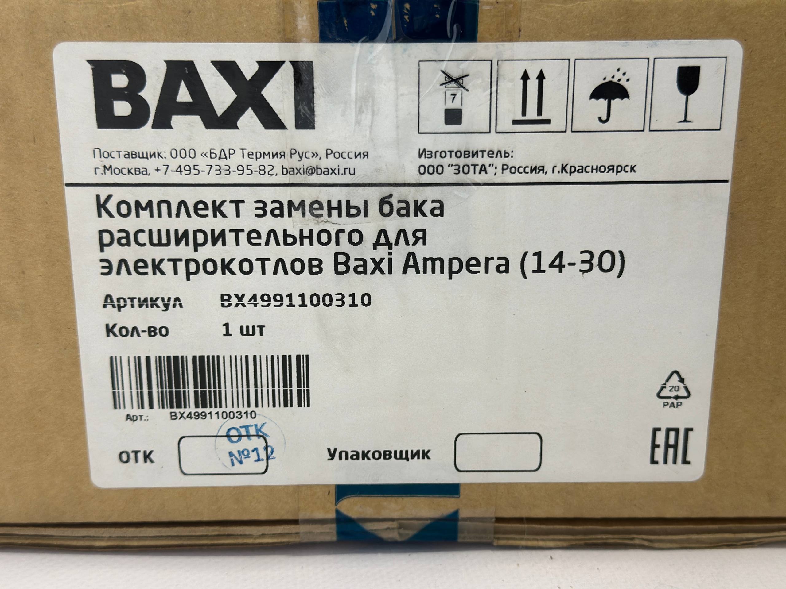 Используется для замены ранее устанавливаемого расширительного бака BX4991100005 (CIMM12L) на котлах серии Ampera (14-30). Состав комплекта: •) Развилка входная BAXI Ampera 14-30 (Zilmet10) - BX4991100229 •) Кронштейн крепления бака расширительного Baxi Ampera •) Расширительный бак BSR WL10L, 3/4 inch (плоский прямоугольный) - BX4991100315 •) Уплотнение плоское кольцевое 3/4 inch (13,5х24), S=3 мм - BX4991100029 •) Уплотнение плоское 1 1/2 inch (3х44), S=2 мм - BX4991100030