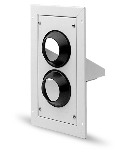 Опора для заведенения труб забора воздуха и отвода продуктов сгорания в единную вертикальную шахту. Устанавливается на стену и имеет 2 дополнительных съемных кронштейна. Является сборным изделием. Основное назначение - фиксация двух труб диаметром 80 мм и уплотнение точки их входа в единую вертикальную шахту. Центральная является съемной и установлена на 4 болтах для того чтобы в случае необходимости можно было проинспеткировать точку входа труб в вертикальную шахту.
