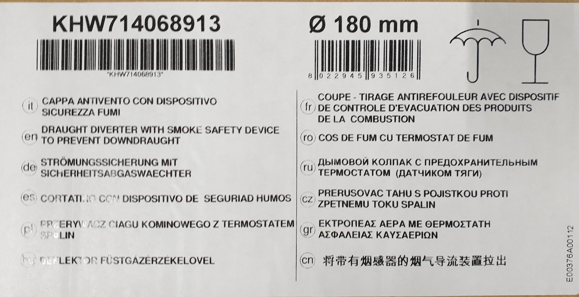 Дымовой колпак со стабилизатором диаметр 180 мм для Slim 1.620 iN