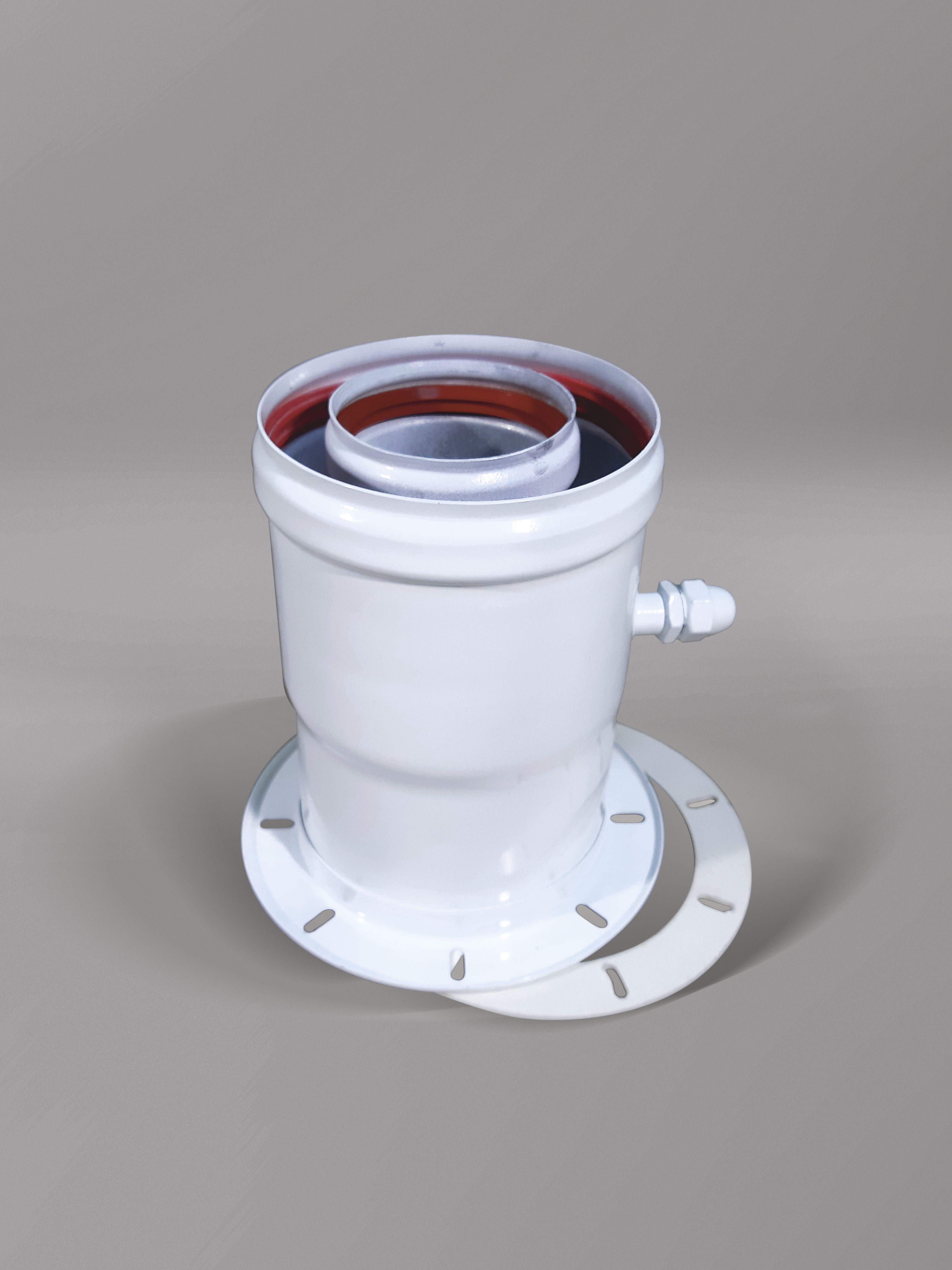 Начальный вертикальный коаксиальный адаптер с конденсатоотводчиком для котлов ECO Classic / ECO Nova, диам. 60/100 мм. Коаксиальный адаптер для первоначального вывода трубы вертикально вверх с конденсатоотводчиком. Разработан специально для котлов ECO Classiс и ECO Nova и устанавливается на котел при помощи фланца. Диаметр 60/100 мм. В комплекте имеется EPDM прокладка 100 мм, стальной фланец и крепежные саморезы. Заканчивается раструбом для присодинения к последующей трубе дымохода