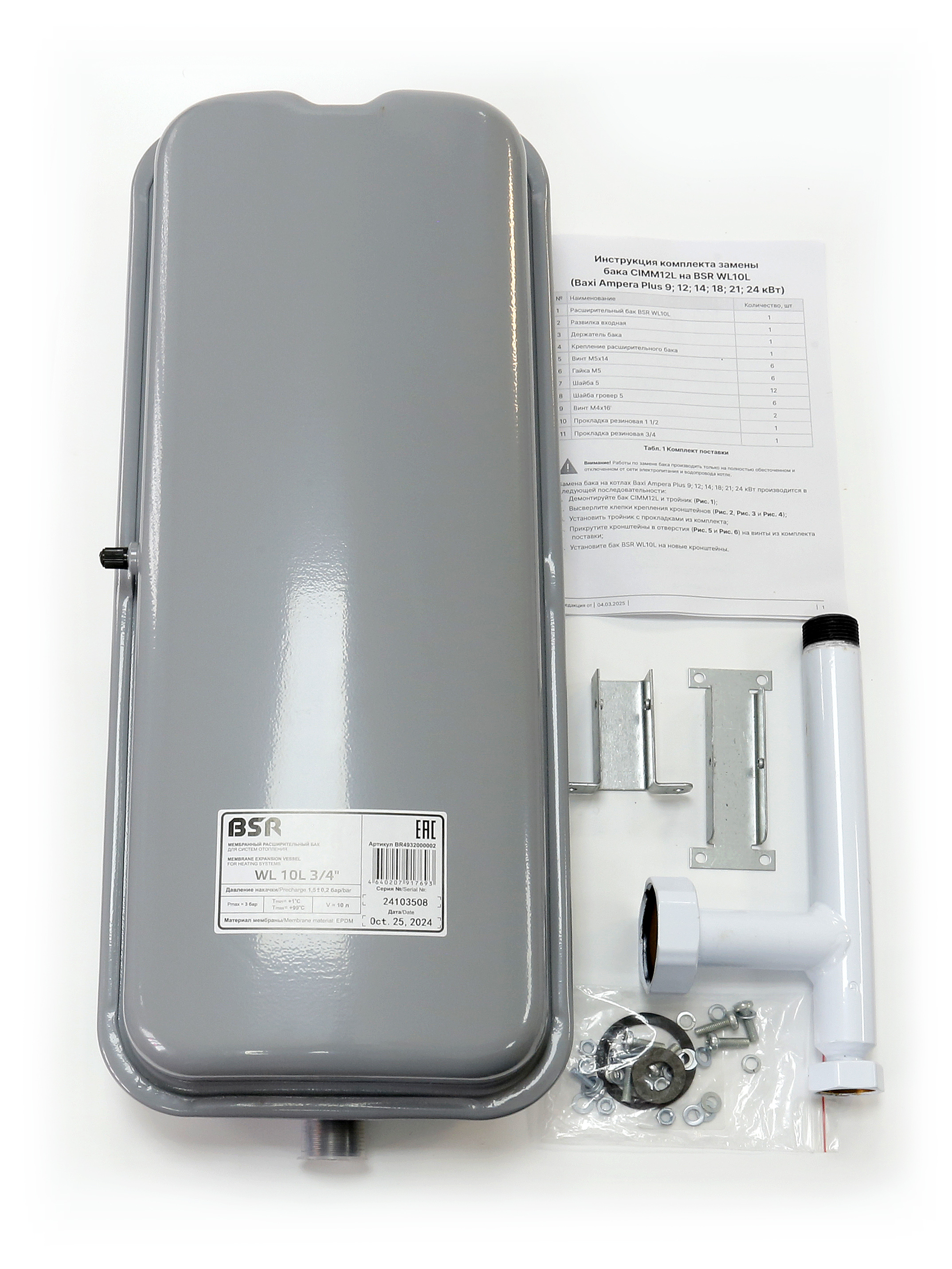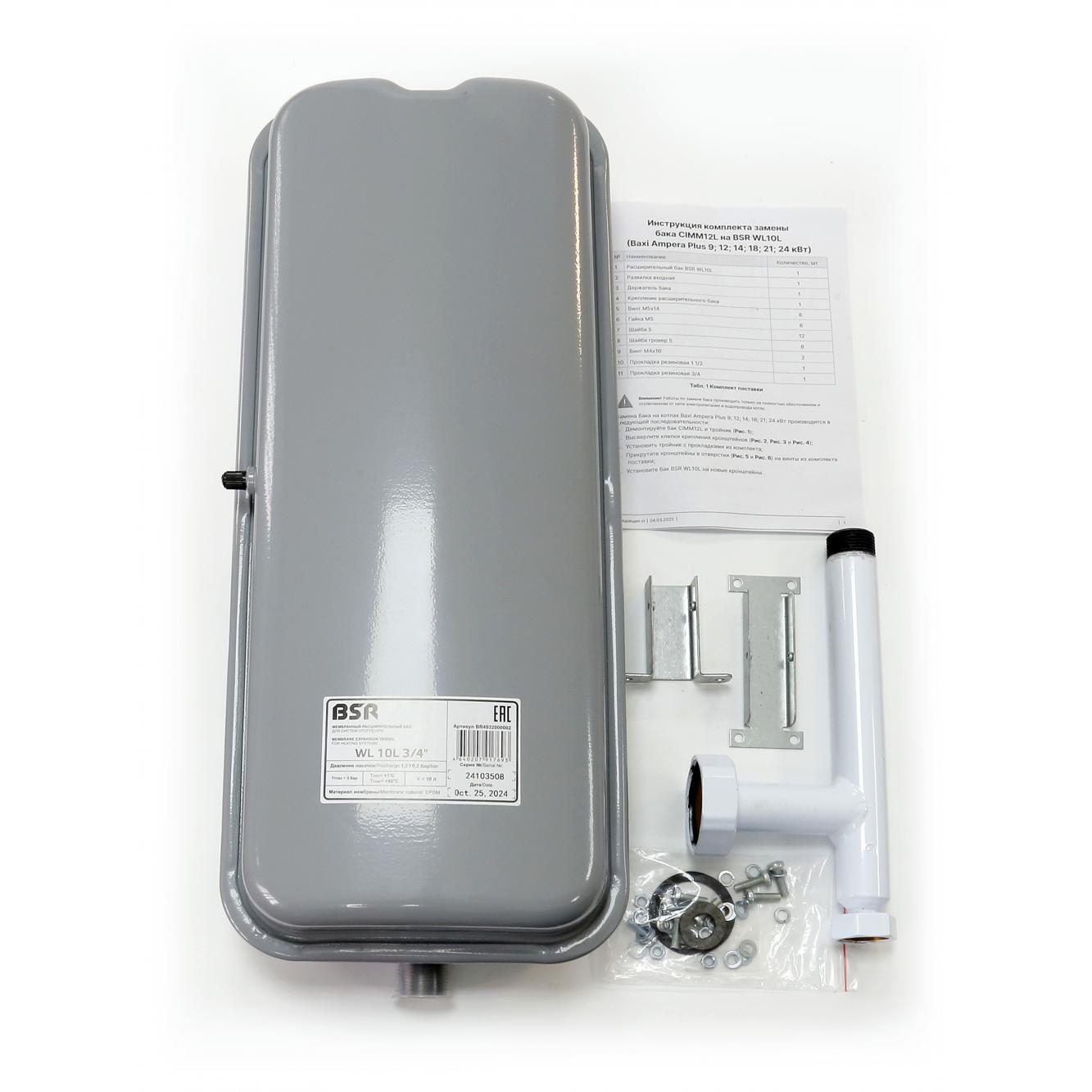 | 4 | BX4991100312 | Комплект замены бака расширительного CIMM12L на бак BSR 10л для электрокотлов Baxi Ampera Plus (9-24) | Комплект замены бака расширительного CIMM12L на бак BSR 10л для электрокотлов Baxi Ampera Plus (9-24) | 113.68 | Где купить | - | ||||||