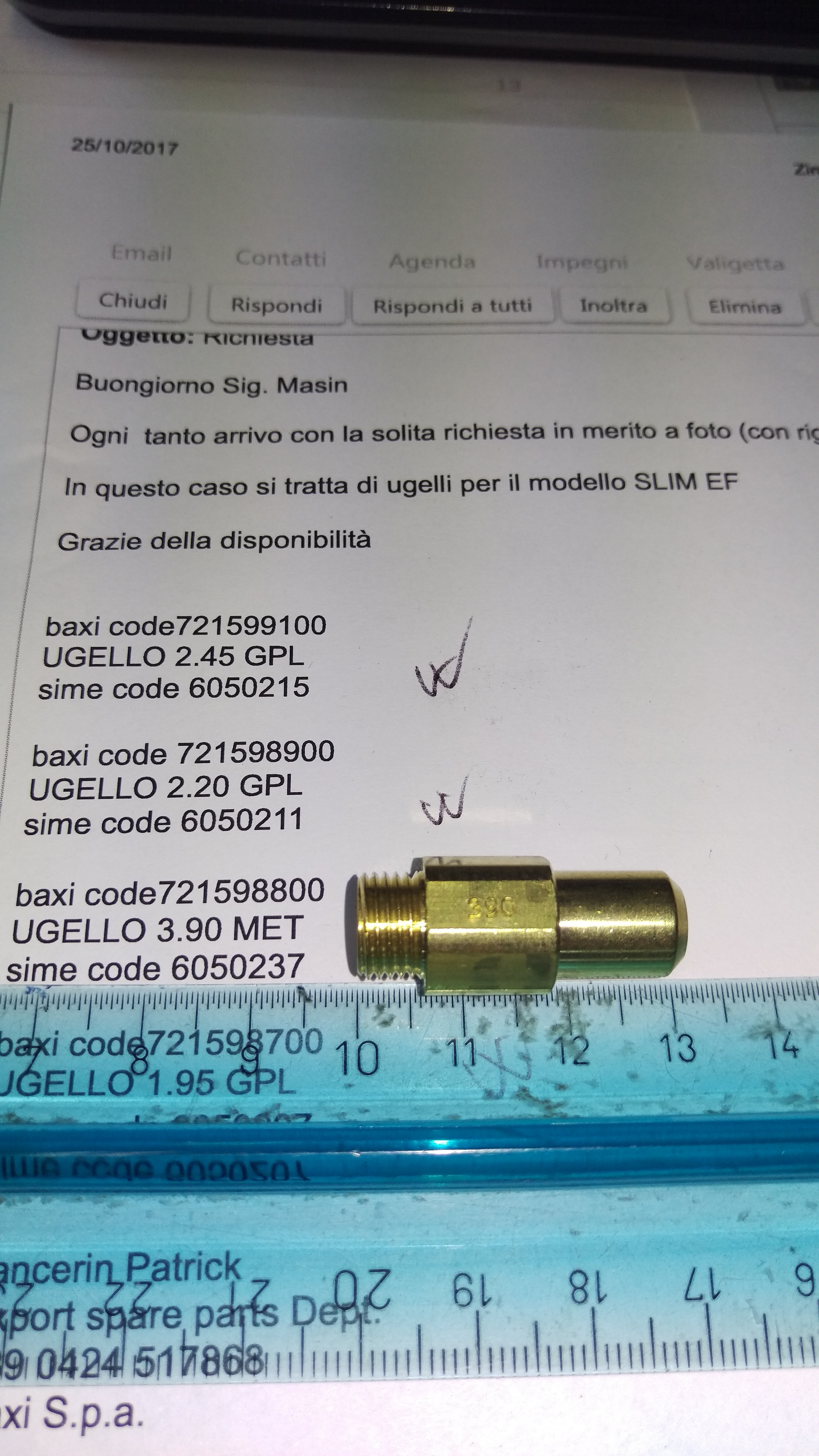 | 43 | 721598900 | NOZZLE D2,20 FOR L.P.G. | Форсунка Ø2,20для сжиженного газа | 13.63 | Где купить | - | ||||||